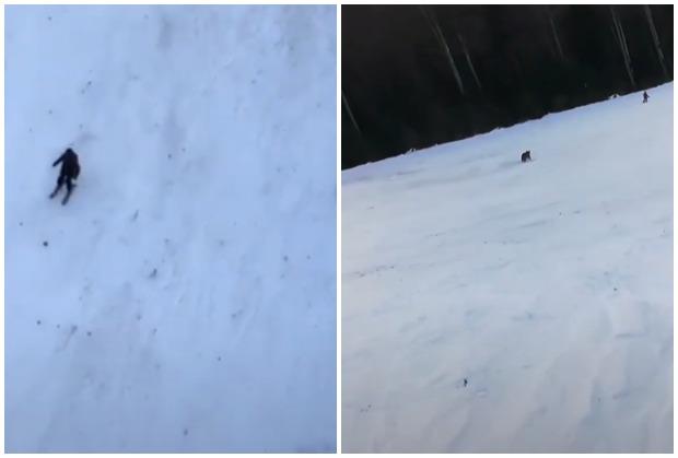 Kako se može videti, medved je pojurio niz stazu pokušavajući da stigne mladića koji se spuštao.