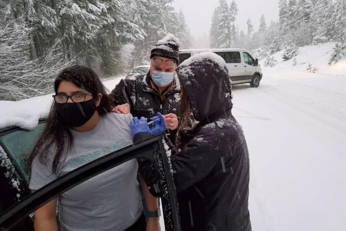 Zdravstveni radnici u Oregonu koji su se u utorak bilo blokirani u snežnoj oluji počeli su davati ostatke vakcina protiv koronavirusa automobilistima pored puta, umesto da puste doze da propadnu, rekli su lokalni zvaničnici.