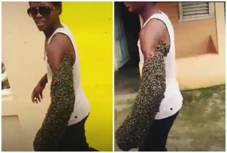 Naime, potpuno opušteno, mladić je šetao ulicom dok su mu hiljade insekata prekrivale ruku.