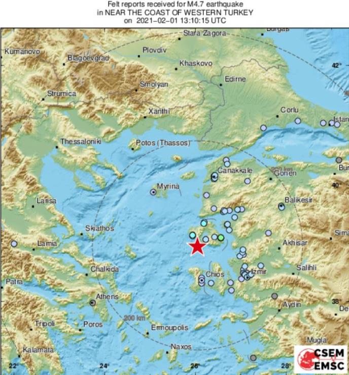 Zatim se osetio još jedan snažan potres jačine 4.9 stepeni u blizini grčkog ostrva Lezbos, a minut kasnije još jedan jačine 4,8 stepeni.