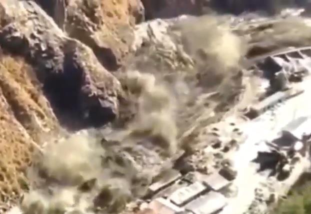 Očevidac je rekao da je video zid prašine, kamena i vode dok je lavina tutnjala dolinom reke.