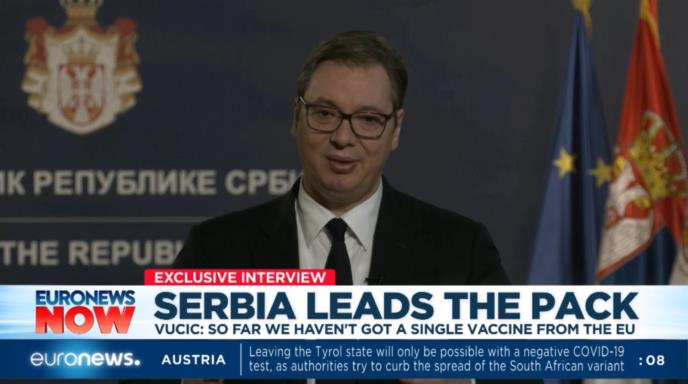 "Srbija nije mogla da bira. U stvari, samo smo hteli i danas želimo da sačuvamo živote ljudi u Srbiji. Za @euronews ponovio koliko sam ponosan na naše dobre rezultate u vakcinaciji stanovništva. Hvala Isabelle Kumar na prilici da predstavim rezulate Srbije"