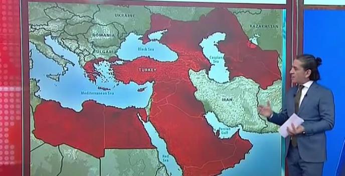 Naime, na turskom kanalu TGRT Haber prikazana je mapa širenje sfere uticaja te zemlje do 2050. godine, tako da se pod vlašću Ankare nalaze mnoge zemlje Bliskog istoka, ali i severa Afrike - Jermenija, Grčka, UAE, Bahrein, Kipar, Gruzija, Liban, Sirija, Jemen, Irak, Kuvajt, Egipat, Libija.. i mnoge druge.