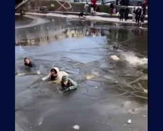 To je na svojoj koži osetila i grupa klizača koja je propala kroz led. Prolaznici su koristili užad i štapove za hokej kako bi izvukli klizače iz vode. Neki su, spašavajući klizače u vodi, rizikovali i sopstvenu bezbednost.