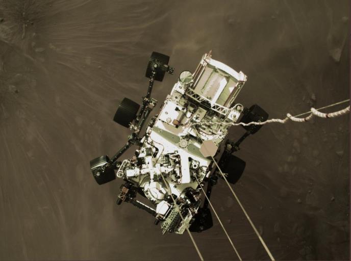 Prve fotografije koje je NASA primila od rovera bile su crno-bele napravljene sa donje kamere odmah po sletanju u krater Jezero, ali su stručnjaci na jučerašnjoj konferenciji objavili još jednu fotografiju, i to u boji.