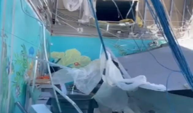 Dramatične snimke mobilnih telefona pokazale su da je krov urušen sa električnim žicama i cevima razbacanim po celom podu.
