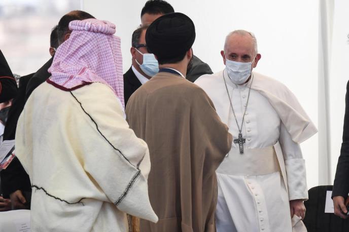 Nakon 55-minutnog sastanka sa Sistanijem papa Franjo se uputio ka ruševinama drevnog grada Ura, koji se smatra rodnim gradom Abrahama, oca judaizma, hrišćanstva i islama, gde bi trebalo da održi govor na meduverskom sastanku.