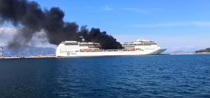 Veliki požar izbio je danas na kruzeru "MSC Lirika" koji je ukotvljen u luci na Krfu od 30. januara tokom zimske sezone.