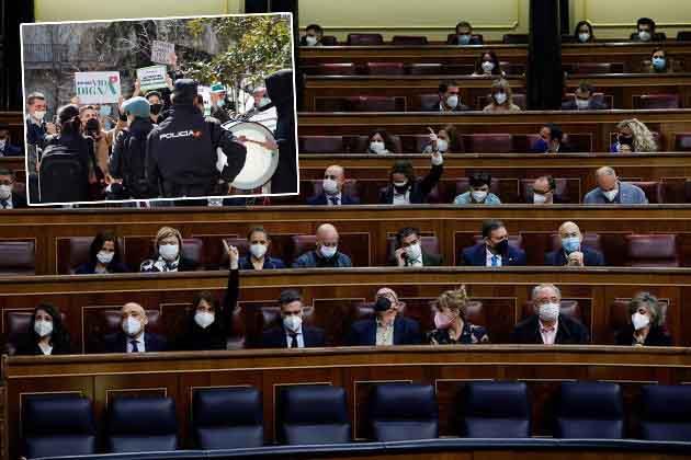 Ispred parlamenta, grupe za i protiv zakona demonstrirale su tokom rasprave i glasanja.