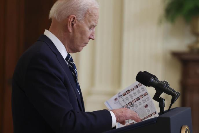 Bajden (78) viđen je kako drži jedan list na kojem su portreti novinara koje je pozvao na konferencije za štampu, a koji su označeni brojevima.