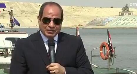 Tokom konferencije koja je trajala sat i po u gradu Ismailija na obali Sueckog kanala predsednik Egipta je odgovarao na pitanja o deblokadi kanala. Brodovi koji su plovili kanalom su bučno trubili, zbog čega je predsednik više puta morao da prekida govor i sačeka da sirene prestanu.