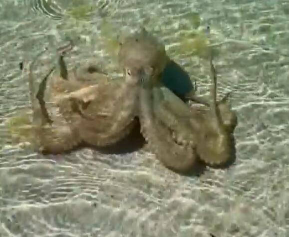 Shvatio je da se radi o hobotnici tek kada je s dvogodišnjom ćerkom prišao bliže, snimajući video. Tada se hobotnica odjednom okrenula u njihovom smeru.