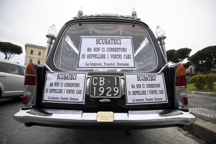 Pogrebnici u Rimu su danas protestovali zbog velikog kašnjenja sahrana na gradskim grobljima i poručili da vlasti nisu sposobne da se izbore sa velikim brojem smrtnih slučajeva koji su posledica Kovid 19.