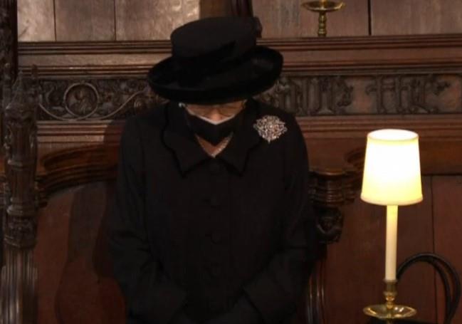 Kraljica je tokom sahrane u kapeli sv. Đorđa sedela sama, a prizor je rastužio mnoge. Moglo se videti i da su joj oči suzne.