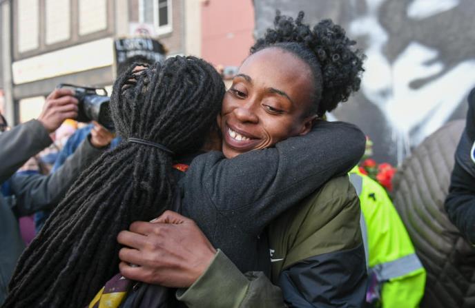 Potom je nastavio: "Recite njegovo ime", a grupa se nadovezala: "Džordž Flojd!".