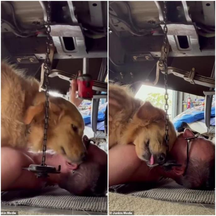 Preslatka ženka zlatnog retrivera samo je želela da joj njen gazda iz Australije, zauzet radom na automobilu, pokloni malo pažnje.