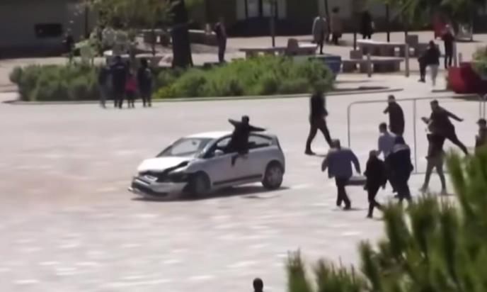 Nepoznati muškarac potrčao je i uskočio stopalima napred kroz otvoren prozor automobila u pokretu u glavnom gradu Albanije kako bi zaustavio vozača koji je divljao po Skenderbeg trgu.