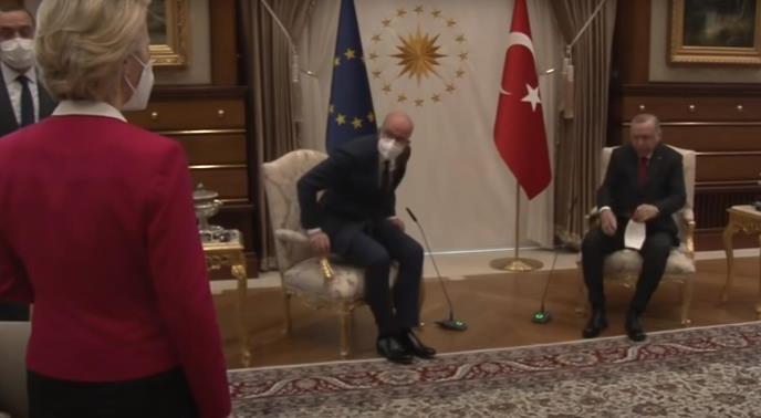 Ursula fon der Lajen i Šarl Mišel posetili su 6. aprila Tursku. Prilikom susreta s turskim predsednikom Redžepom Tajipom Erdoganom, Mišel je seo na stolicu odmah pored Erdogana, dok je Fon der Lajen morala da sedne na obližnji kauč sa strane, dok je preko puta nje na drugom kauču bio je turski ministar spoljnih poslova.