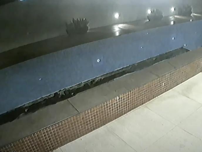 Na snimku nadzornih kamera se može videti kako se bazen od 22 metra iznenada sručio, a gomila vode je završila u garaži koja se nalazi ispod.