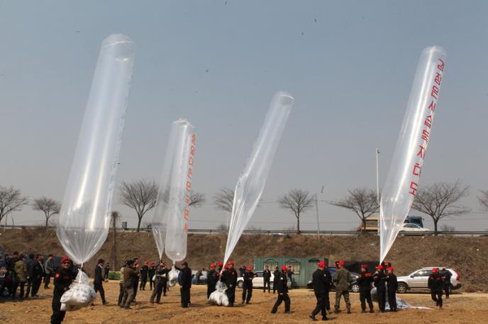 Park Sang-hak, koji je prebegao iz Severne Koreje 2000. godine i prevodi grupu "Borci za slobodnu Severnu Koreju", rekao je da je u periodu između nedelje i četvrtka pustio deset balona u kojima je bilo 500.000 flajera, 500 mini knjižica i hiljadu novčanica u apoenima od jednog dolara sa lokacija na granici.