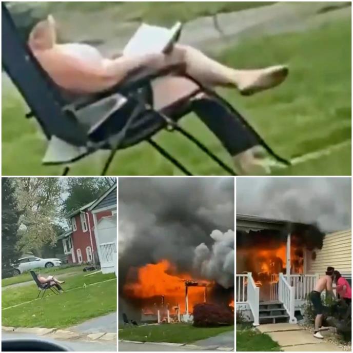 Gejl Mitveli (47) snimljena je kako zavaljena u baštensku stolicu, sa knjigom u krilu gleda kako njen dom u Elktonu nestaje u plamenu.