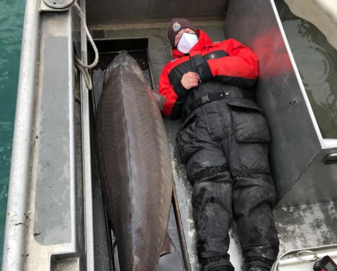 Osoblje Društva za zaštitu ribe i divljih životinja kaže da se radi o jesetri dugačkoj oko 2 metra i teškoj oko 108 kilograma.