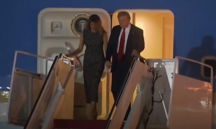 Video BitČuta koji se deli na Fejsbuku prikazuje vrlo mutni snimak onoga što izgleda kao bivši predsednik Donald Tramp i Melanija Tramp kako se izlaze iz Air Force One.