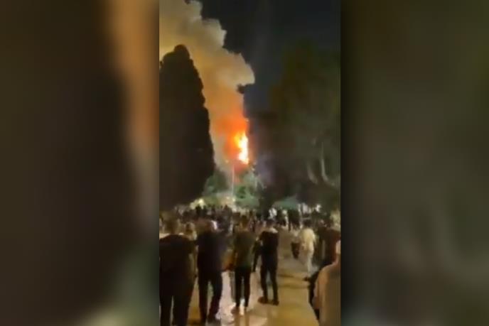 Snimci očevidaca sa lica mesta prikazuju drvo u plamenu neposredno ispred Al Akse, jedne od tri džamije na platou.