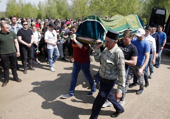 Rođaci i prijatelji nastradalih u pucnjavi u šškoli u ruskom gradu Kazanju, plakali su i grlili se tokom jučerašnje sahrane devetoro ubijenih.