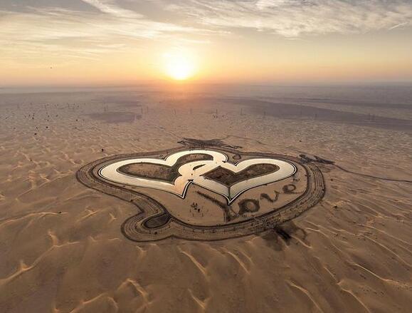 Pustinju Al Kudra u Ujedinjenim Arapskim Emiratima krasi veštačko jezero koje ima oblik dva isprepletena srca, a popularno Ljubavno jezero Dubaija je toliko veliko da se može videti i iz svemira.