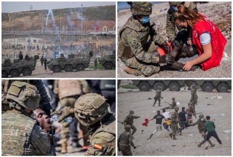 Od jutros su španski vojnici i policajci u borbenoj opremi pratili neke migrante direktno do Maroka dok je marokanska policija oterala stotine mladića od granične ograde.