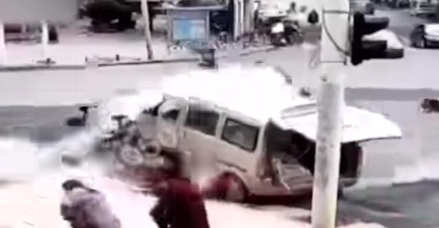 Kineski put je, kako se vidi na snimku, jednostavno eksplodirao, a slučajni prolaznici su leteli kroz vazduh.