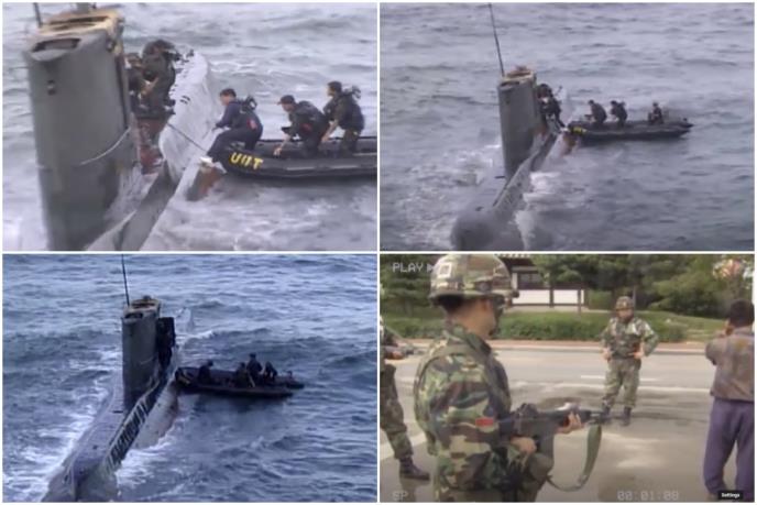 Priča kaže da se podmornica približila obali nekih 300 metara, kada je izronila iz mora. Posada severnokorejske podmornice, naduvala je gumeni čamac i postavila motor. U čamac se ukrcala grupa diverzanata, koji su otplovili do obližnje plaže na kojoj su se iskrcali i razmileli se. Podmornica je prema tadašnjem pisanju medija zaronila i napustila teritorijalne vode Južne Koreje i otišla u međunarodne vode u kojima je ostala do sledećeg dana.