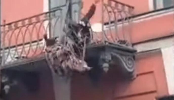 Olga Volkova i Jevgenij Karlagin žestoko su se svađali na balkonu svog stana na drugom spratu zgrade u Sankt Petersburgu, što je "inspirisalo" brojne prolaznike da ih snime.