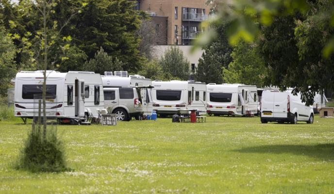Putnici su juče parkirali 30 karavana i motokuća ispred kraljičinog omiljenog zamka Vindzor što je nagnalo policiju da pokuša da ih ukloni sa travnjaka i iz celog kvarta.