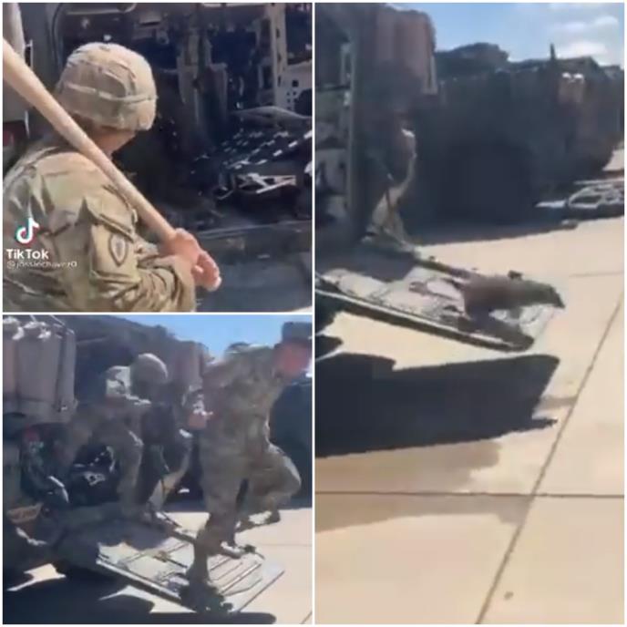 Video prikazuje grupu američkih vojnika koji pokušavaju da iz oklopnog borbenog vozila Strajker da izvuku ni manje ni više nego rakuna koji se bežeći od vojnika tu sakrio.
