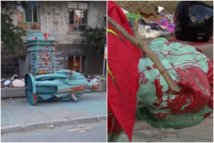 Video snimci na društvenim mrežama sa protesta u nedelju pokazuju da je statua Edžertona Rajersona, koji se smatra jednim od tvoraca kanadskog kontroverznog školskog sistema, srušena sa pijedestala dok je u blizini navijala masa ljudi, prenosi BBC.