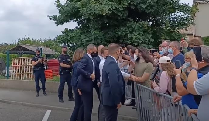 Sarkozi je prolazio kroz masu kada je dotakao ruku jednog muškarca kako bi se progurao pored njega. "Ne dodiruj me. Kaljaš me", rekao mu je muškarac. Sarkozi mu nije ostao dužan:"Teraj se idiote".
