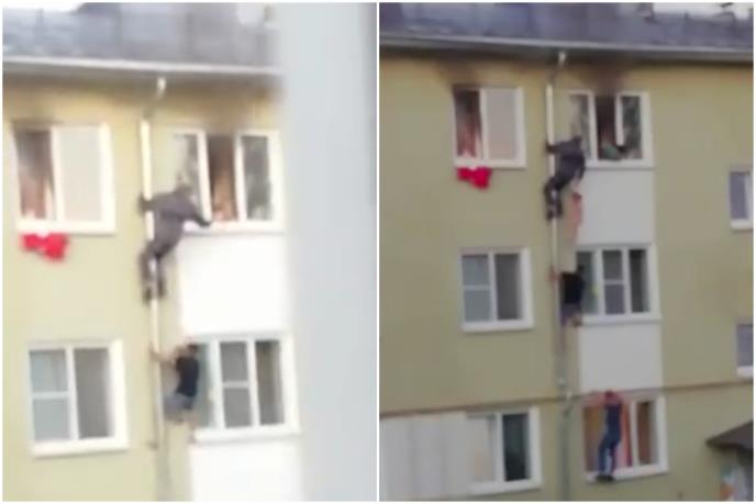 Gotovo filmska akcija spasavanja dogodila se u ruskom gradu Kostromi kada su hrabri ljudi izvukli troje dece iz požara u stanu na trećem spratu popevši se do njega uz oluk!