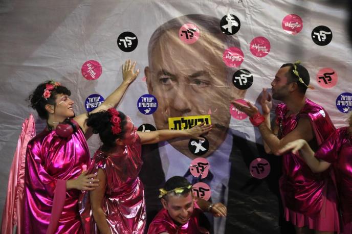 Izraelci već gotovo godinu dana demonstriraju ispred rezidencije i traže njegov odlazak. Njemu se sudi za korpuciju, malverzacije i zloupotrebu vlasti u nizu afera.
