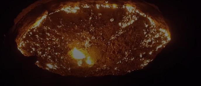 Ali, na severu te pustare postoji nešto nadrealno: Darvaca krater, krater pun istopljenog gasa koji decenijama bljuje vatru i u narodu je poznat kao "Vrata pakla".
