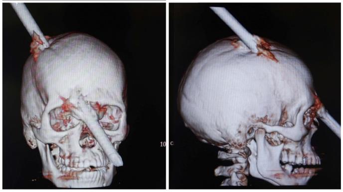 Potpuno svestan šipku dugu 1,8 metara, koja mu je probila lobanju, pridržavao je rukom