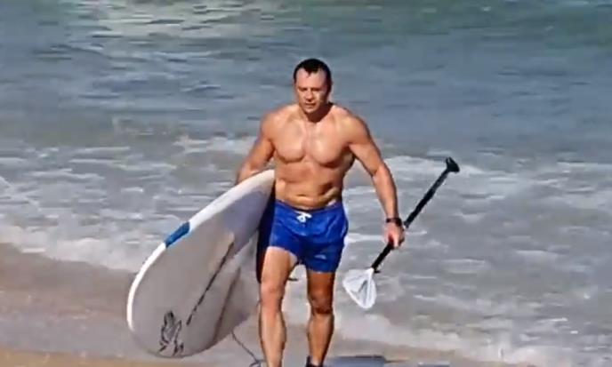"Zaboravili su ovo da nam kažu - Razvozov je najzgodniji ministar turizma koga samo ikada imali", stajalo je u opisu videa na kome se vidi kako muškarac izlazi iz vode, sa daskom za surfovanje.