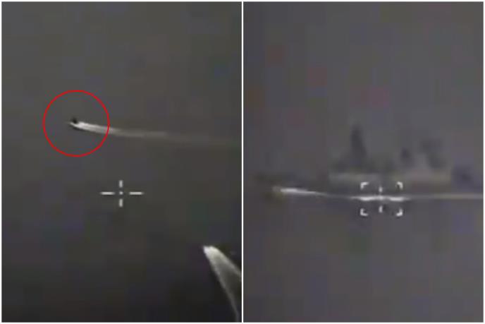 Naime, na snimku koji je načinjen iz drona vidi se britanski razarač kako plovi Crnim morem i kako ga nadleću rusi borbeni avioni iz eksadrile Crnomorkse flote.