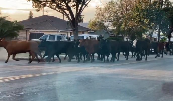 Lokalna policija uz pomoć šerifa Los Andjelesa, provela je nekoliko sati u lovu na krave.