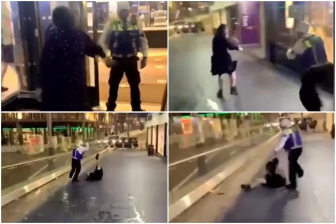 Čuvar u restoranu brze hrane snimljen je u Birmingemu kako palicom i nogama premlaćuje ženu.