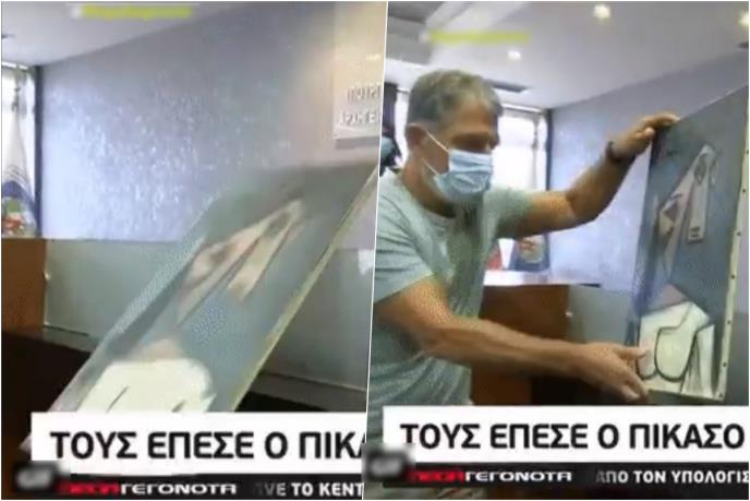 Naime, pre obraćanja ministarke kulture i polcije kao je 49-godišnji osumnjičeni skrivao sliku posle "pljačke veka" dve slike stavljene su bile na manju policu kako bi fotoreporteri mogli da ih slikaju, a kamermani snime. Dok su beležili kadrove skupocena Pikasova slika je pala sa police.