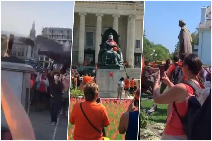 Sve je kako javljaju mediji počelo na Dan Kanade, kada se veliki broj građana okupio ispred parlamenta u Manitobi, gde je statua britanskekraljice Elizabete II bila prva na meti.