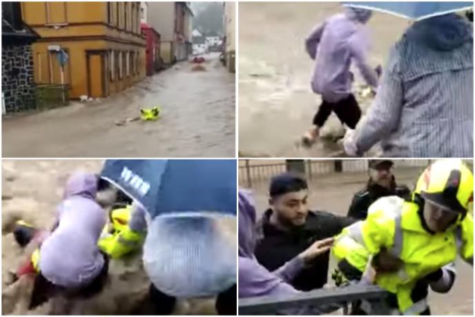 Naime, vatrogasca je u gradu Alteni nosila bujica i činilo se da mu nema spasa, ali je spas ipak stigao, i to maltene u poslednjem trenutku.