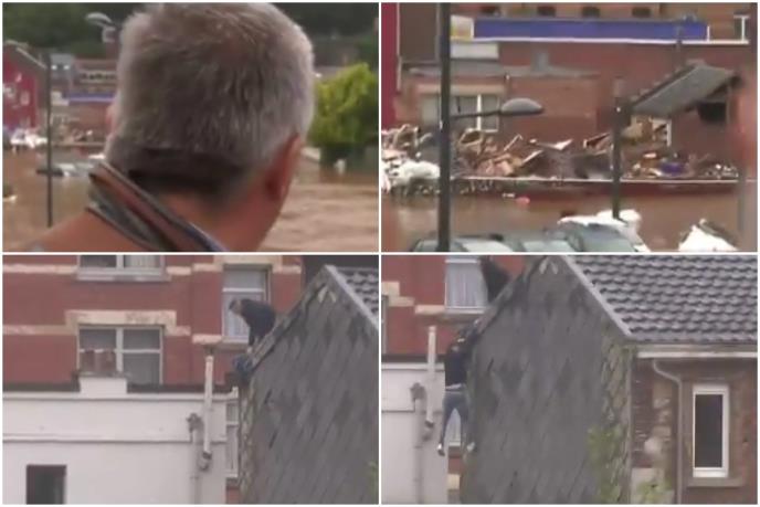 Dok su novinari Skaj njuza uzimali izjavu od gradonačelnika ovog grada, u pozadini je zbog poplave počela da se urušava kuća. Na snimku se vide stanari koji beže preko krovova.